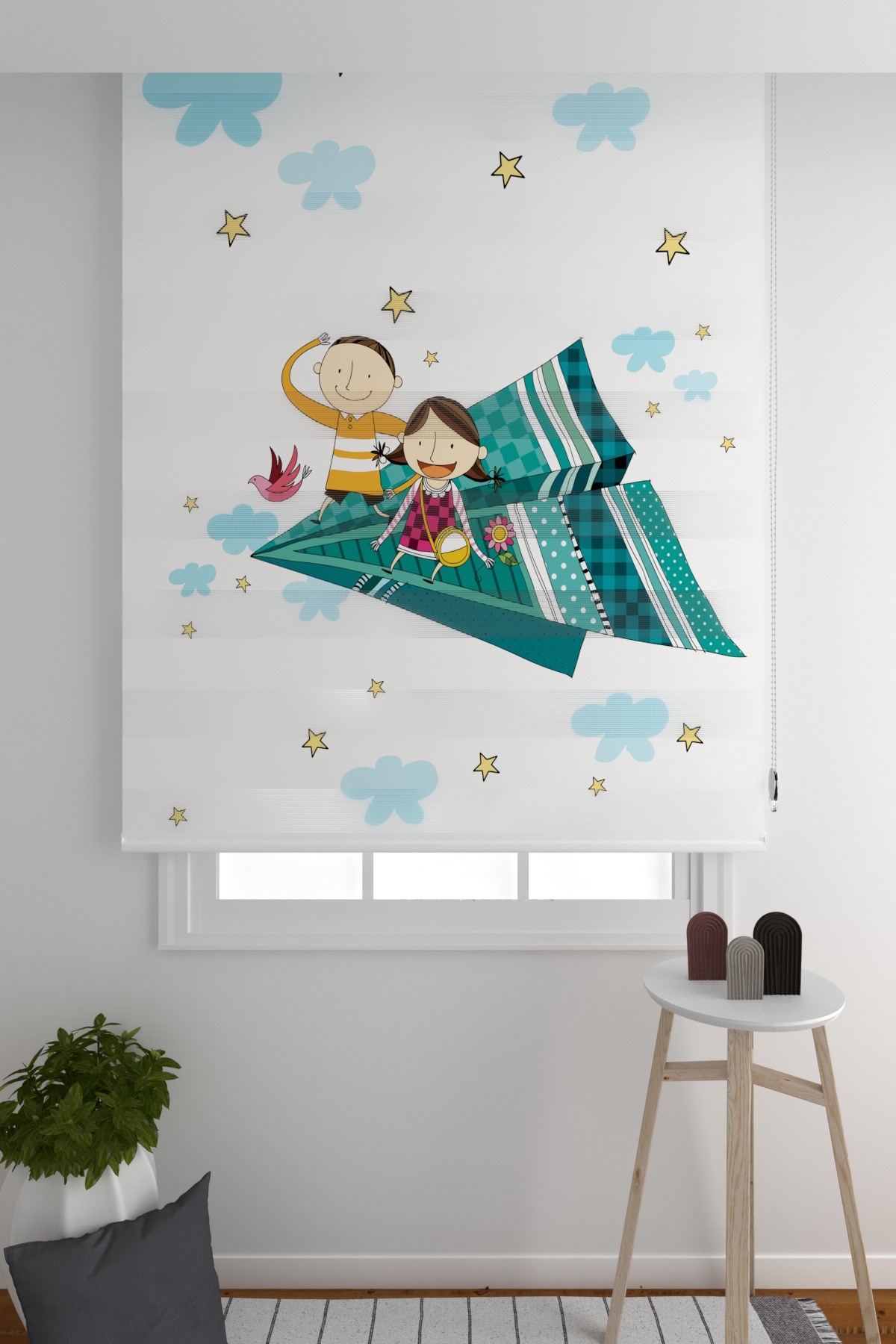 Zebra Perde Kağıttan Uçak Ve Sevimli Çocuklar Çocuk Odası Zebra Perde