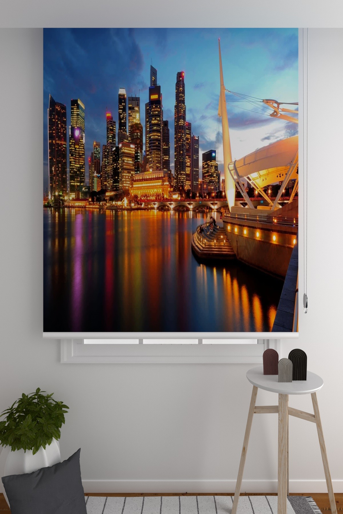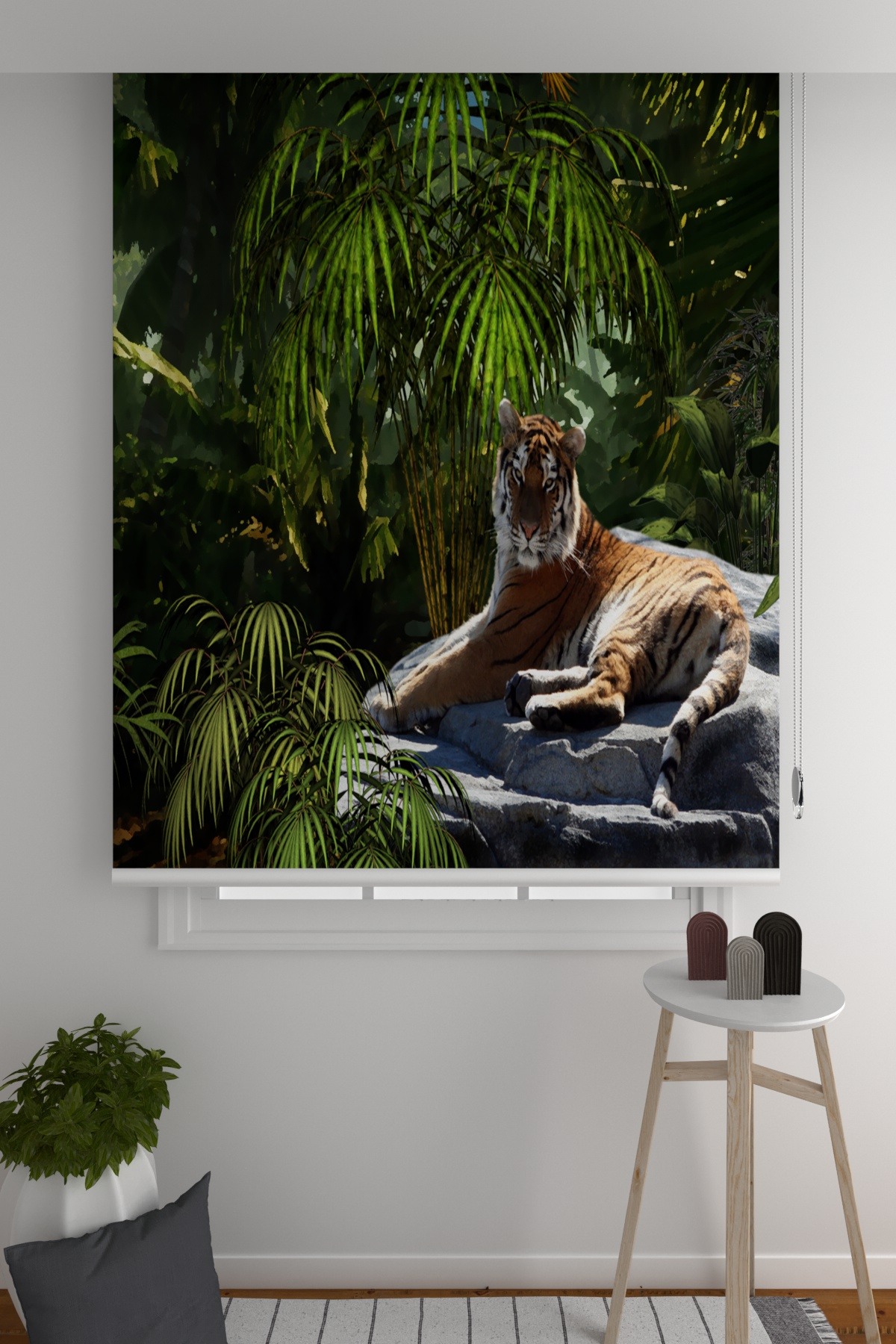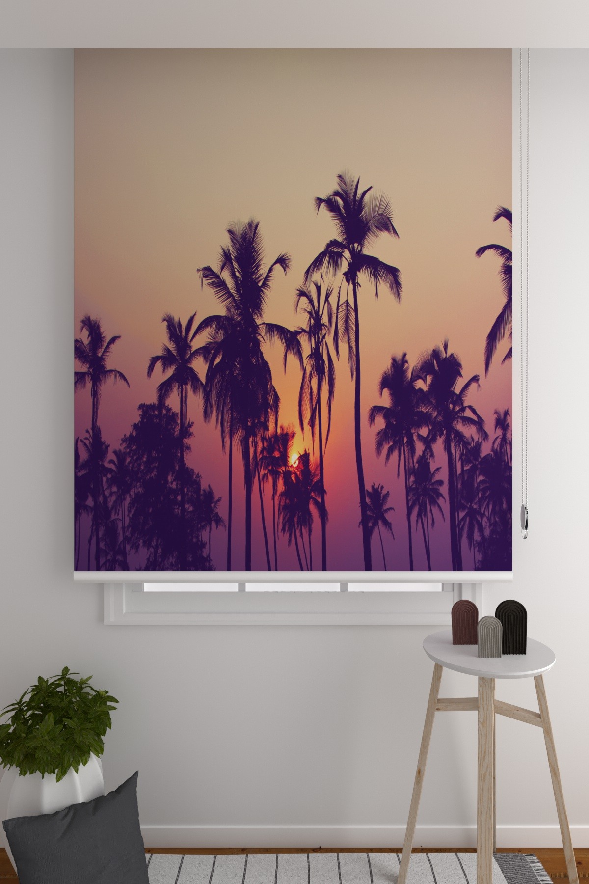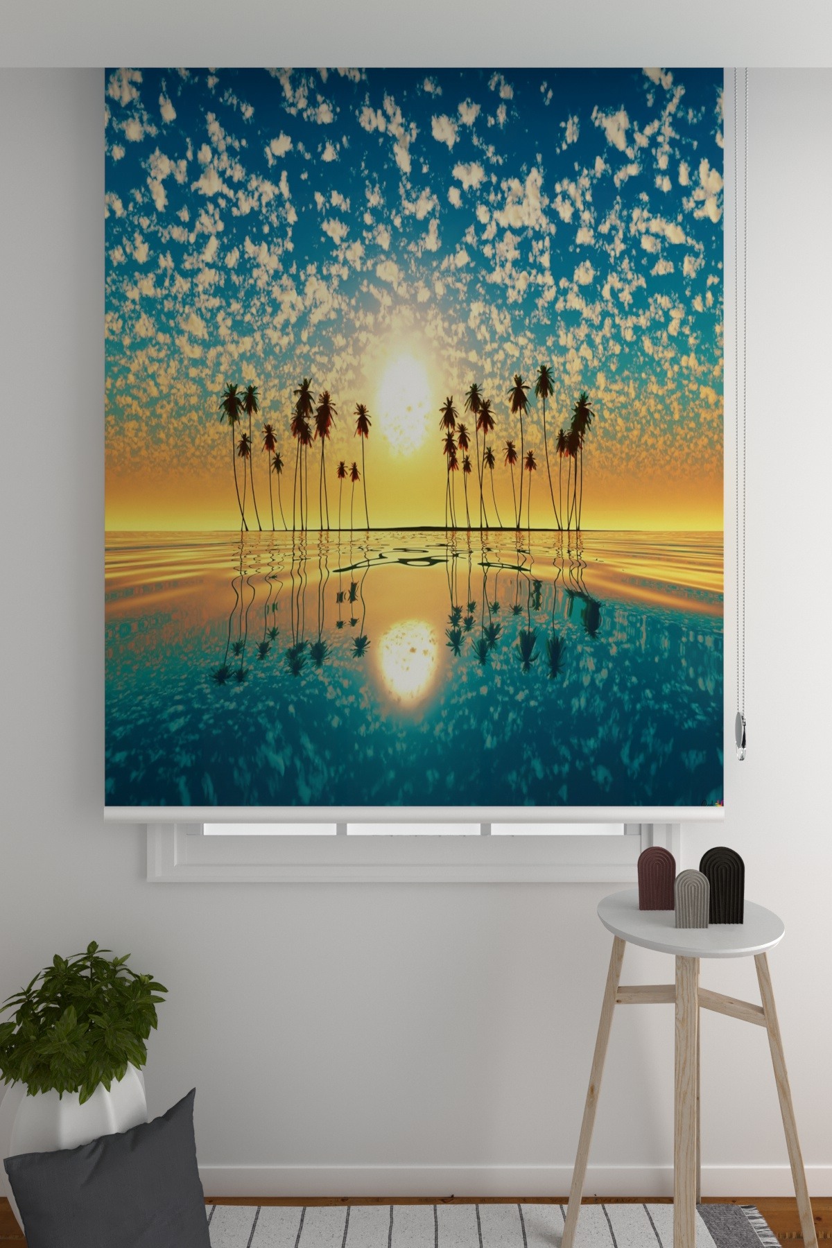 Stor Perde Ada Güneş Palmiye Manzara Desenli Salon & Oturma Odası Hobi Odası Stor Perde