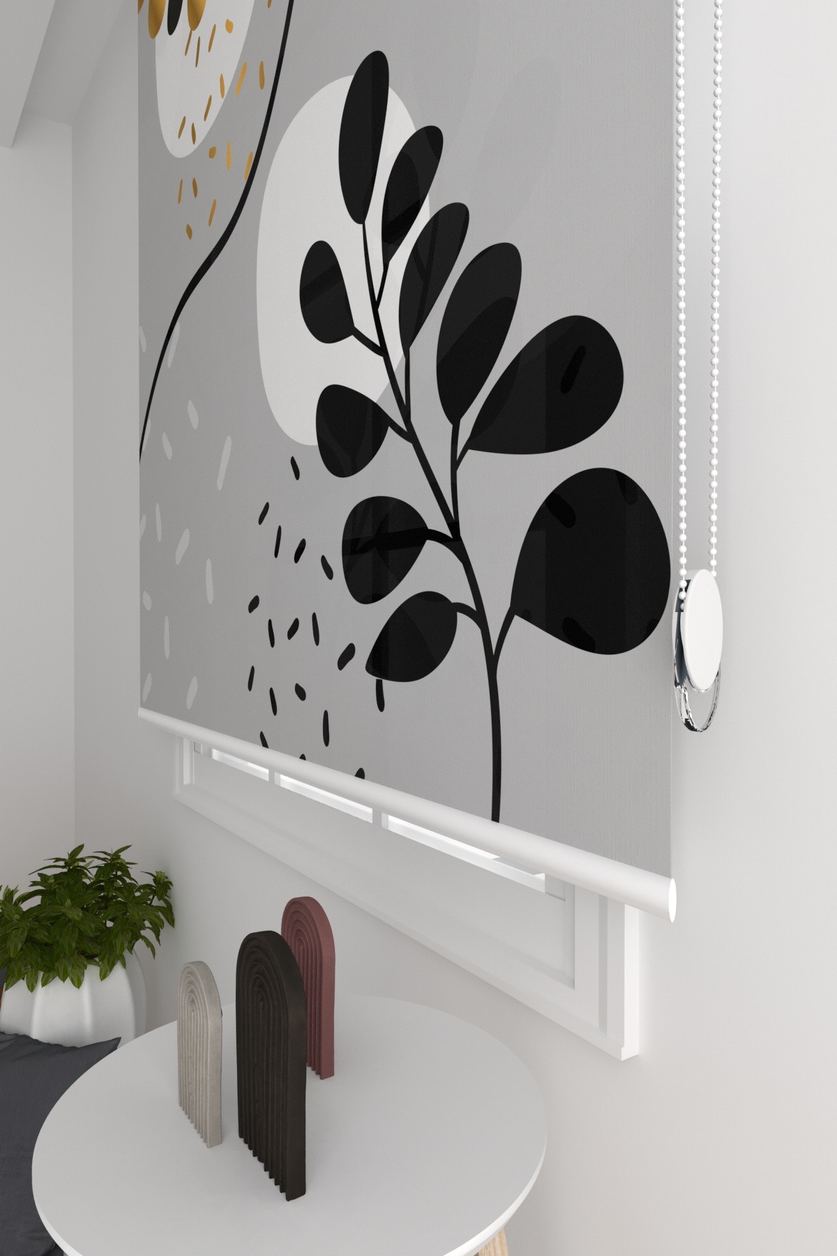 Stor Perde Dallar Ve Yaprak Silüetleri Desenli Salon & Oturma Odası Hobi Odası Stor Perde