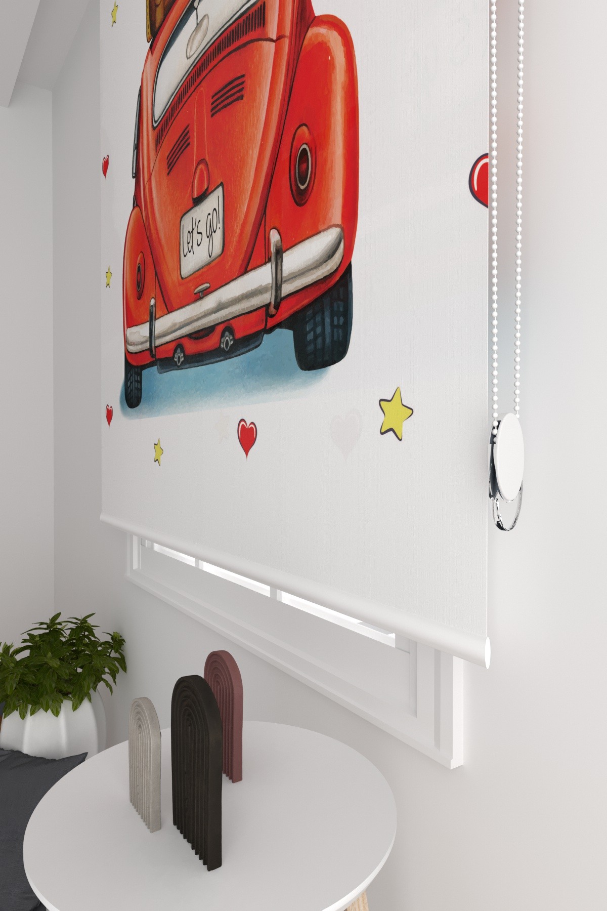 Stor Perde Kırmızı Vosvos Araba Desenli Genç Odası Stor Perde