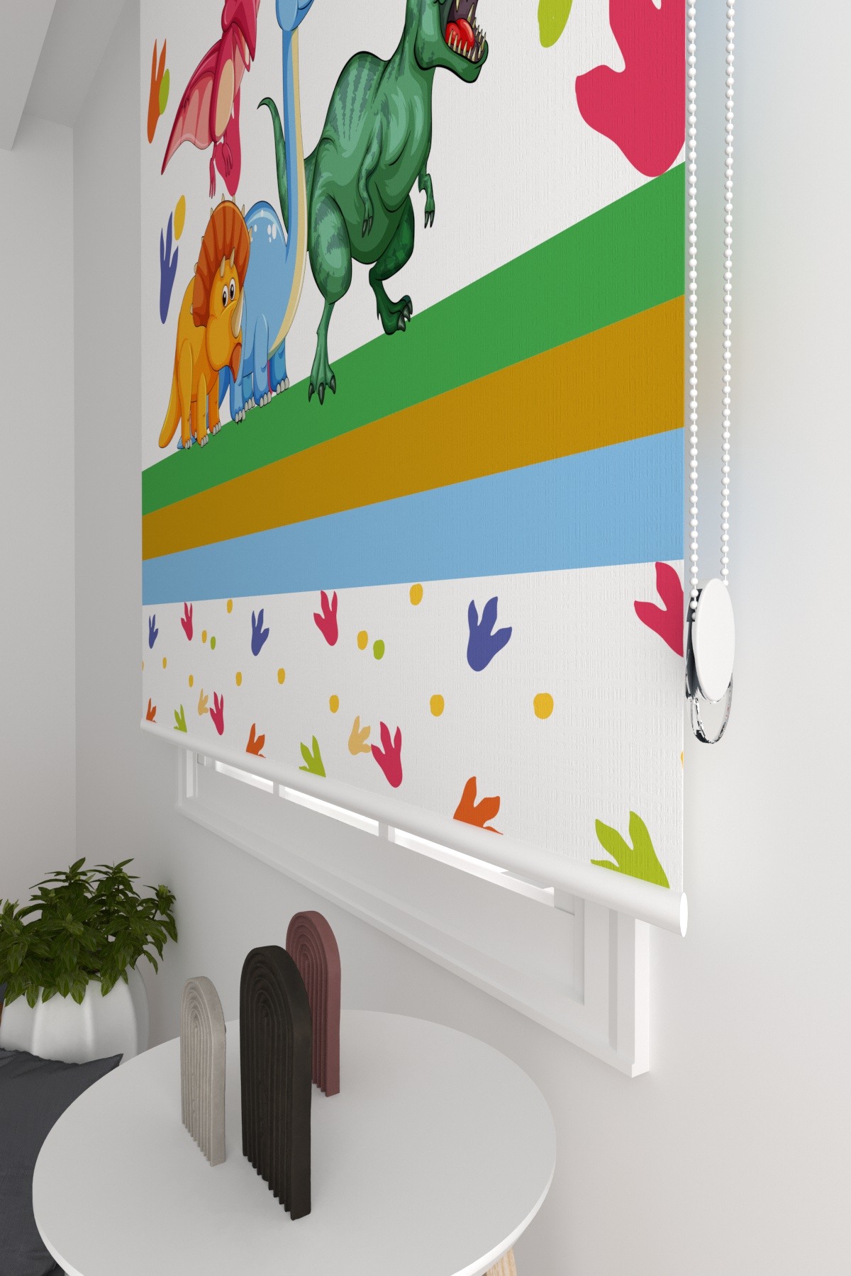 Stor Perde Renkli Dinazorlar Çocuk Odası Stor Perde
