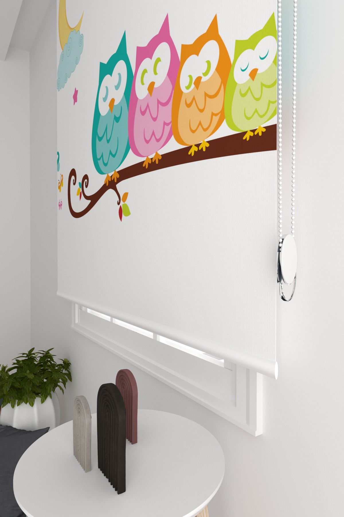 Stor Perde Sevimli Renkli Başkuşlar Çocuk Odası Stor Perde