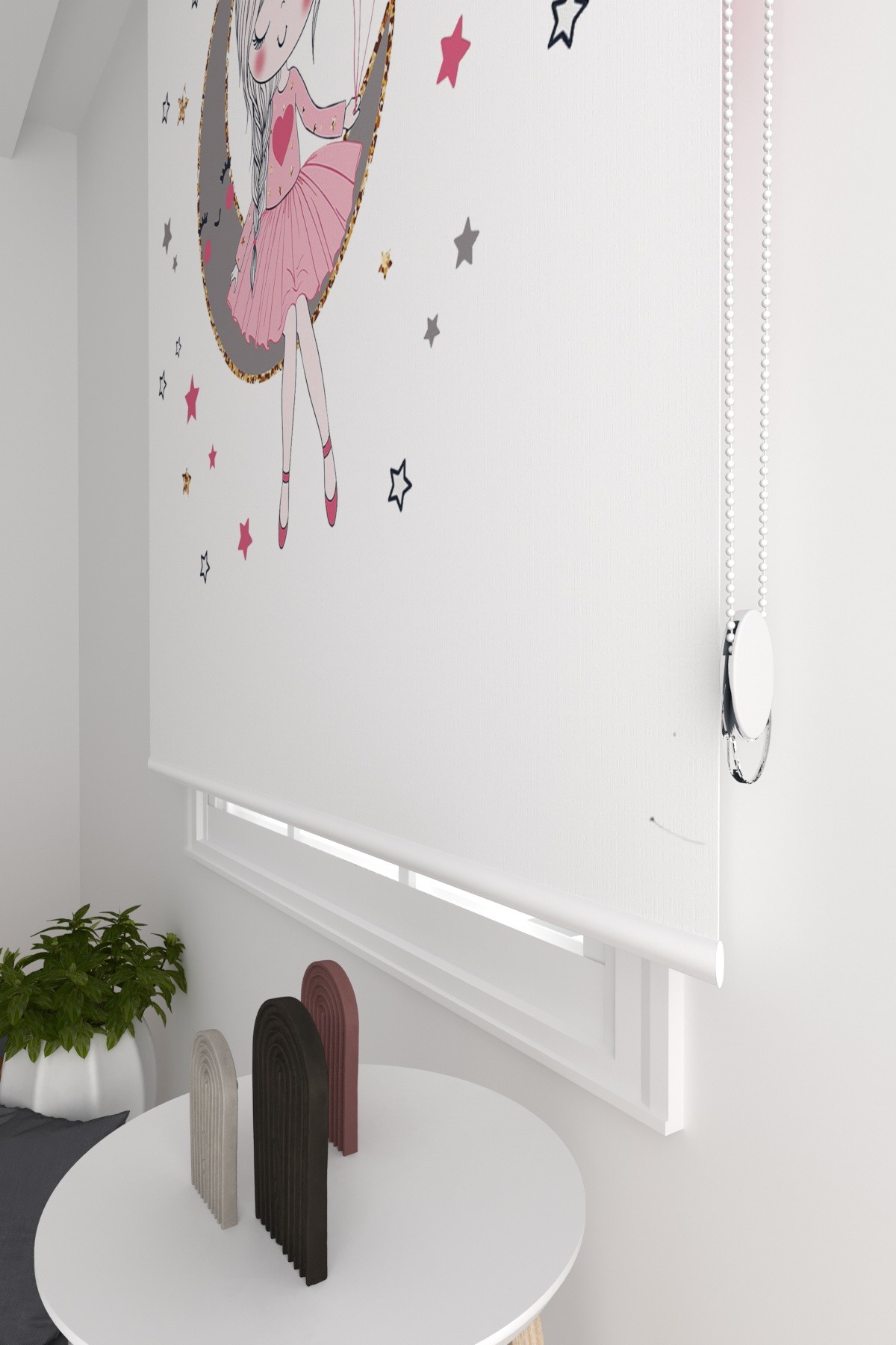 Stor Perde Sevimli Ayda Kız Desenli Çocuk Odası Stor Perde