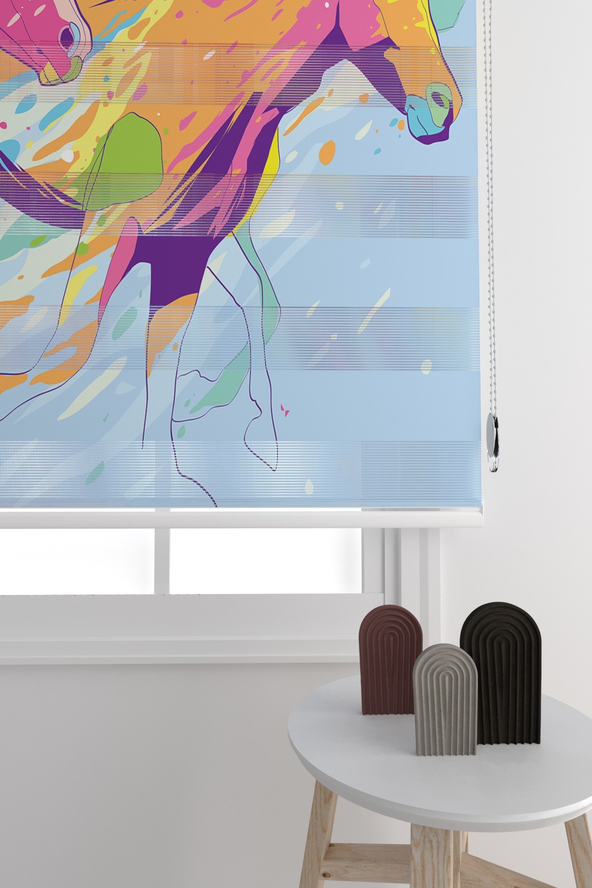 Zebra Perde Renkli Atlar Desenli Salon – Oturma – Hobi Odası Zebra Perde