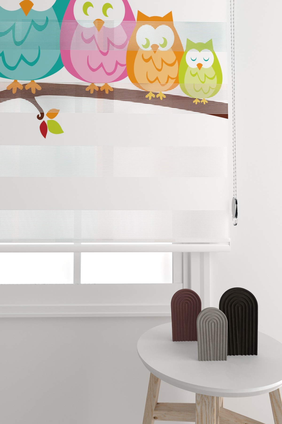 Zebra Perde Sevimli Renkli Başkuşlar Çocuk Odası Zebra Perde